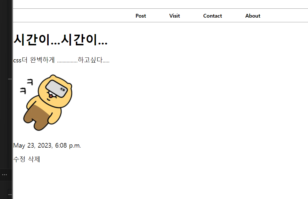 이제 css좀 수정하고 visit부분 방명록 예쁘게 만들면 페이지 끝!