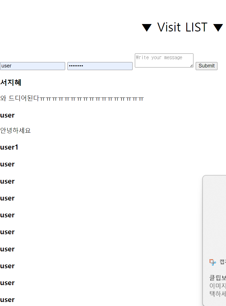 게시판 부분은 따라만 쳐서 기억이 안난다만... 다시 방명록 만들어보면서 정리해보좌