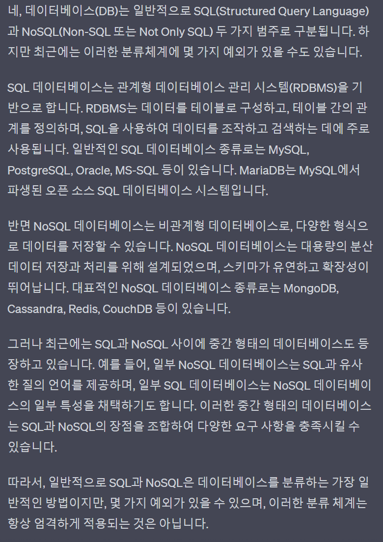 qpt야 오래오래 건강해야한다~ 음! 그렇구만 SQL과 NoSQL로 구분되는 DB가 맞았던거였습니다~