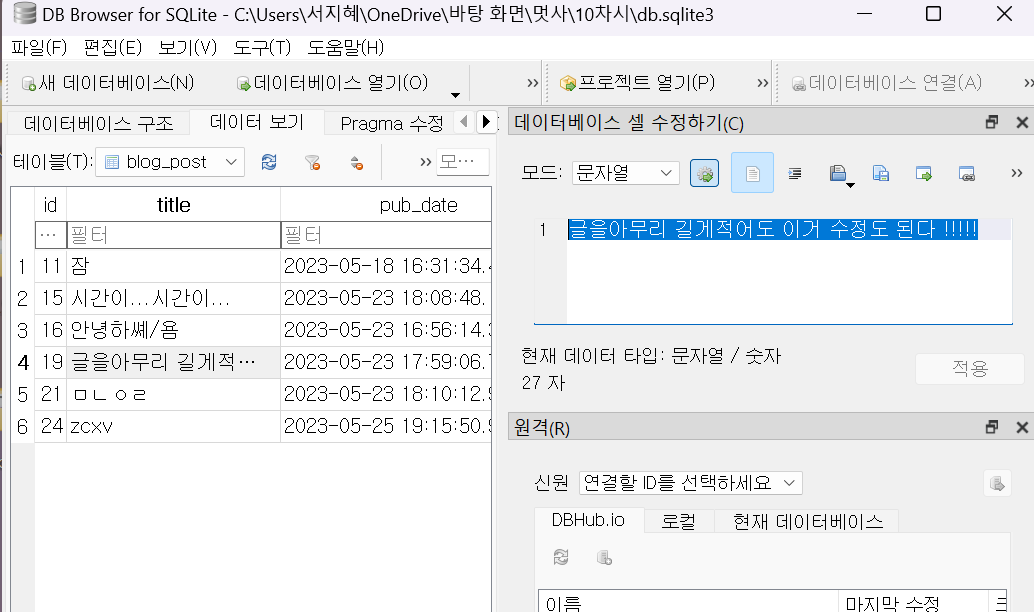 그건바로 db.sqlite3파일에 저장되고 있었던 것이었다!!!