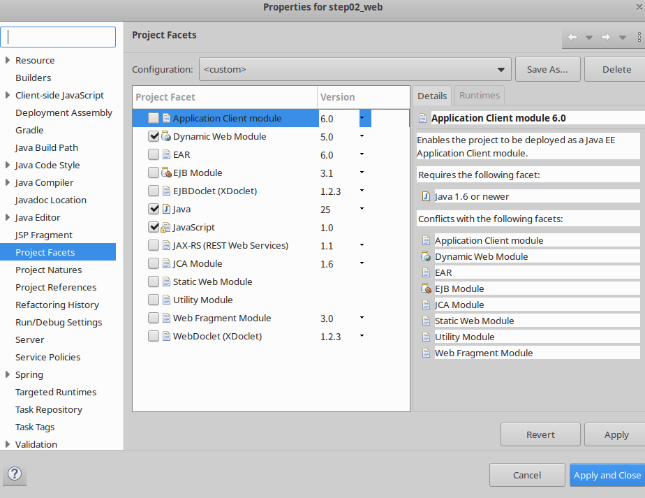 Jsp쓰려면 Project Facets에 Dynamic Web Module설정을해주어야하고