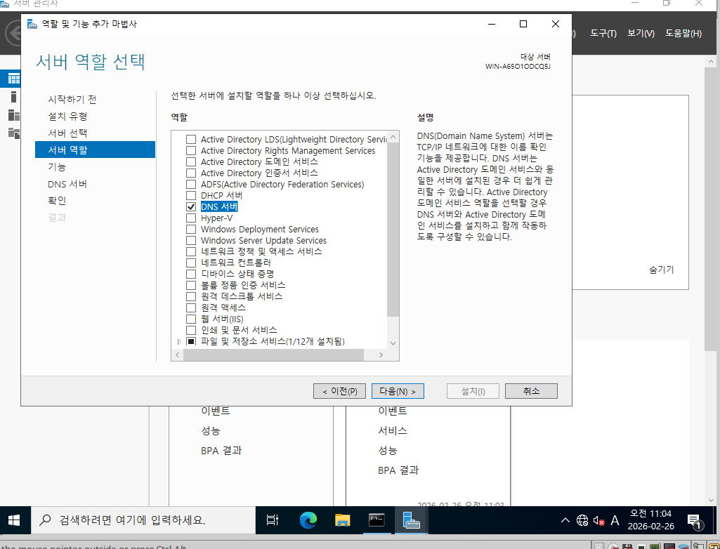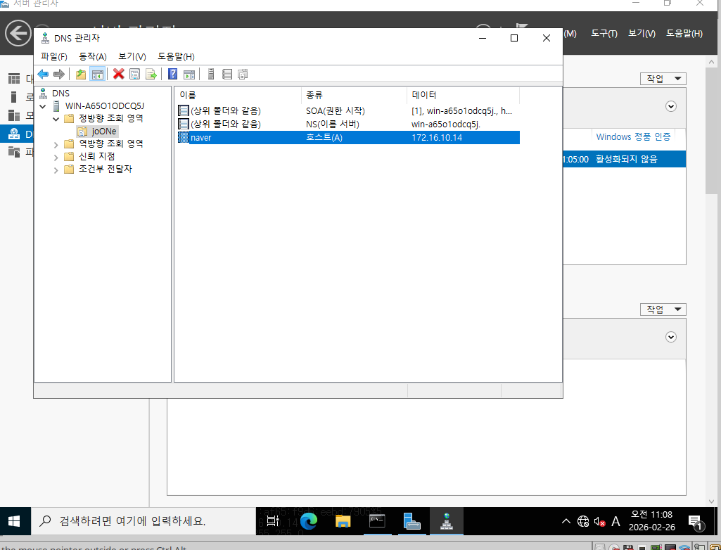 2 . 가상머신 윈도우 위에 DNS서버 만들기