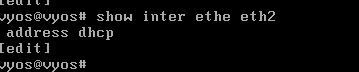 configure set interfaces ethernet eth0 address 172.30.10.1/24 set interfaces ethernet eth0 description Jeju-VM set system name-server 172.30.10.77 commit