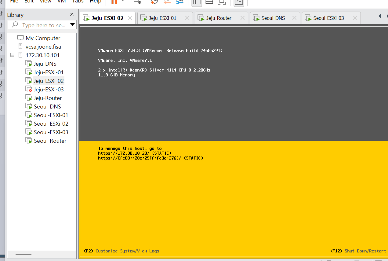 4. exsi위에 또 exsi를 쓰면 , 굳이 exsi가 또 올라가요. 어차피 실습하는 환경에서는 처음부터 현업스럽게 가자~는 타협한부분이라, 이부분까지 타협해서