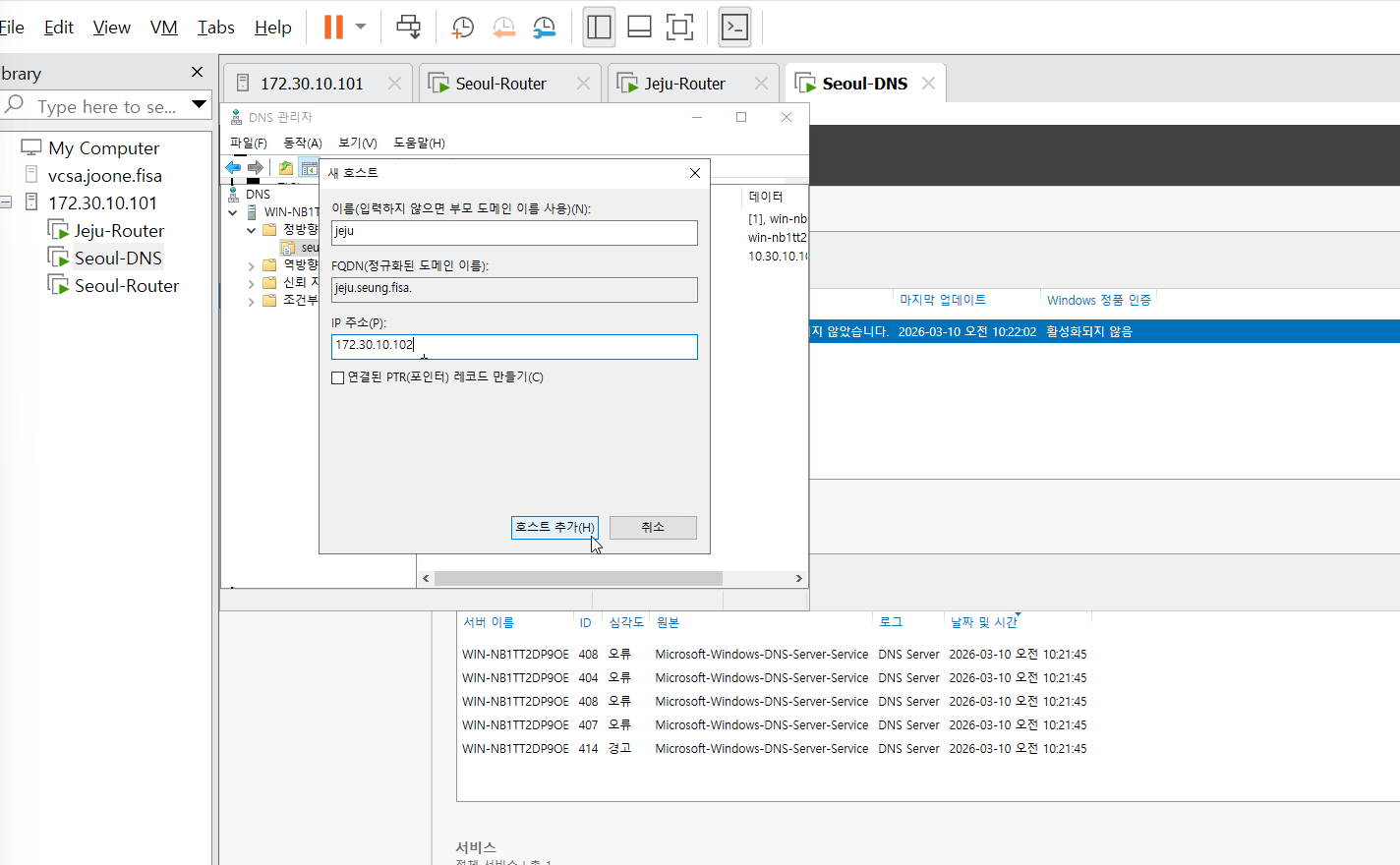 - 일단 서울이 다 완성되어야 제주가 되므로 서울에서 셋팅을 완료하고, 서울과 제주 라우터를 연결해서 통신되게 해야합니다