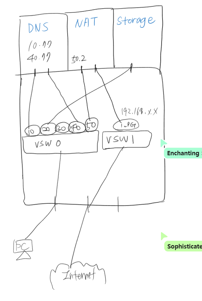 - vSan쓰려면 10g 이슈로 메인서버 exsi 하나에6대의 exsi를 또 올림. 원래 exsi두대를 각각의 서버로 두고, 그 위에 dns나 nat같은 걸 올릴려고했으나~ 굳이 이렇게 하는 이유는, 트래픽이슈 + 한정된 자원 이슈로