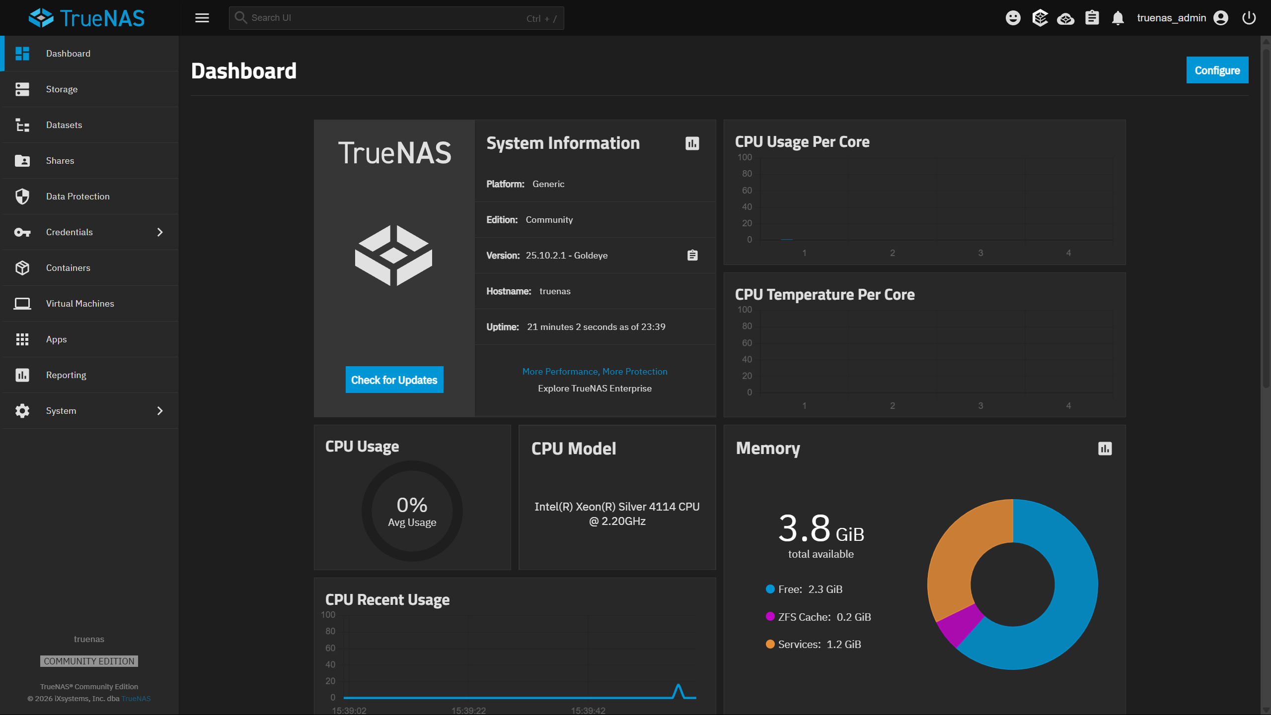 trueNas사이트에서 iso이미지를 받아서 가상환경 하나 만들어줍니다