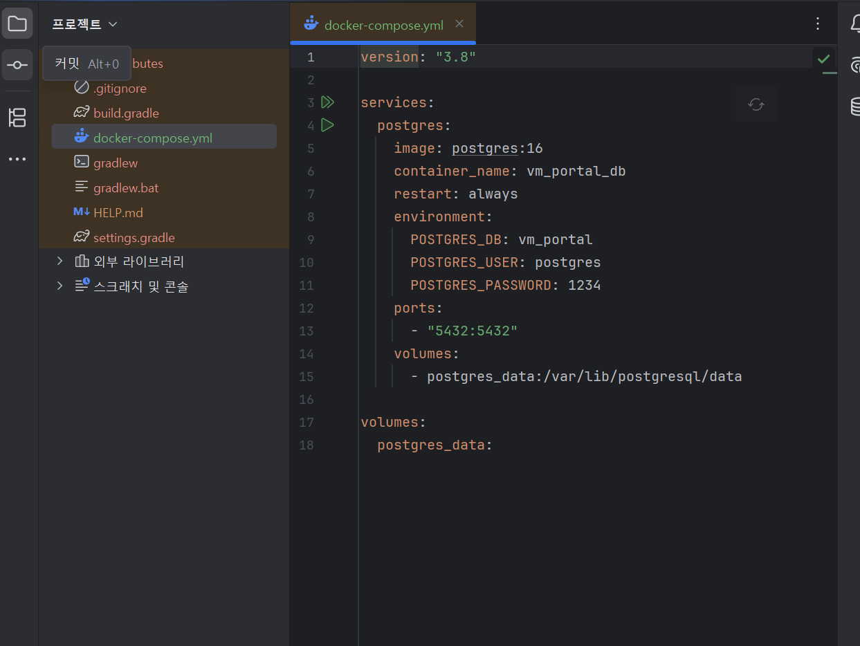 1.2. Docker를 이용해서 DB올리기해당 부분은 자주 했으므로 넘어가겠습니다. dockerfile설정해주고, docker 데스크탑에서 실행해준 뒤, 컴포즈 업만 해주시면 돼요