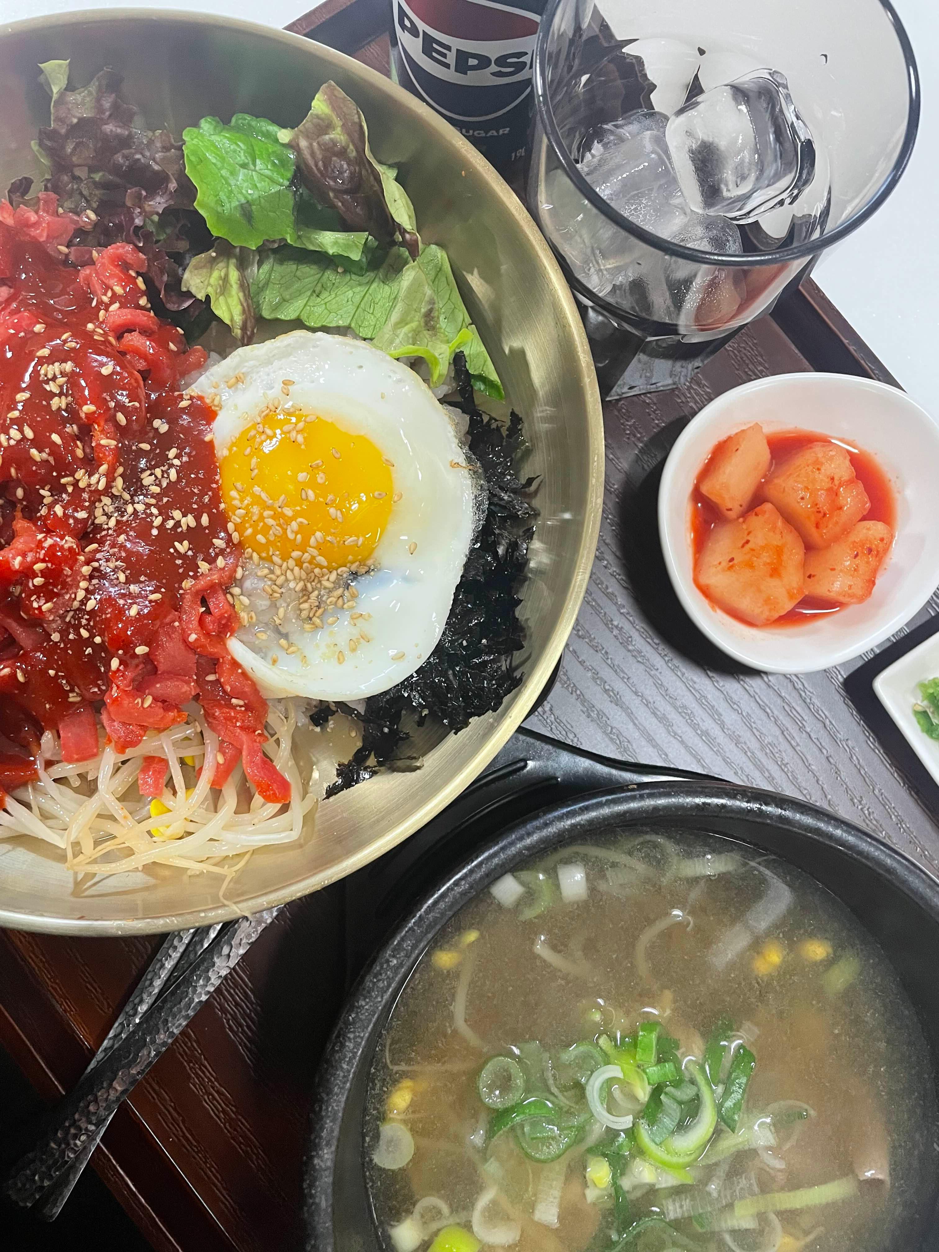 ๊ทธ์์ ๋ด๋ ๋น๋น๋ฐฅ ํ๋๋ฐ ์ด์ง ํํํ๊ธด ํ์ต๋๋ค.